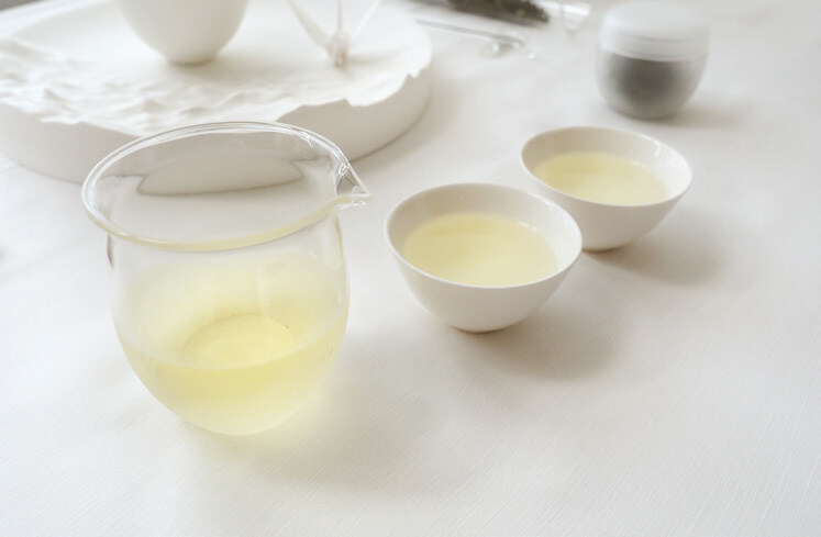徑山茶的茶乾細嫩顯毫,色澤翠綠。茶葉輕躺在仿如被白霧覆蓋的磨砂茶則上,稍稍靠近便會發現茶葉淡淡的甜果香。然而遇水以後,果香驟然消失,悠悠的青草香氣撲鼻而來。而隨著注水結束,舞動的葉子亦隨即安靜下來。注視著蓋碗中的嫩葉,看著它們輕靠著彼此,細長的葉子因吸收水份而慢慢舒展開來,讓你們長期緊皺的眉頭亦不期然地放鬆起來。