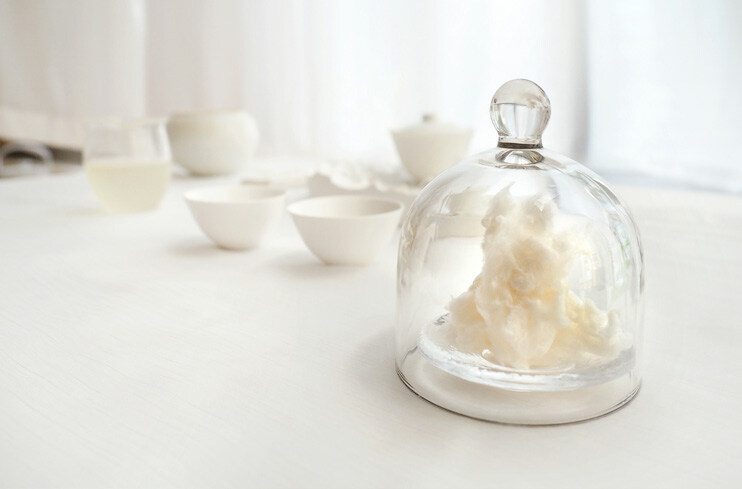 茶湯入口,甜度滿滿,河鮮的滋味在口腔肆意游走,茶質飽滿順滑,奶香綿綿悠長。第二泡,換成濃濃的綠豆香作為主調,茶湯吞入喉中,回甘生津,飄散著悠揚的蘭花香。第三泡,豆香和茶韻變得更為強烈。叉上一小口白霧造型的棉花糖,讓糖中獨有的蔗糖香與茶中綠豆香作伴,為茶席畫上一個甜蜜美滿的句號。